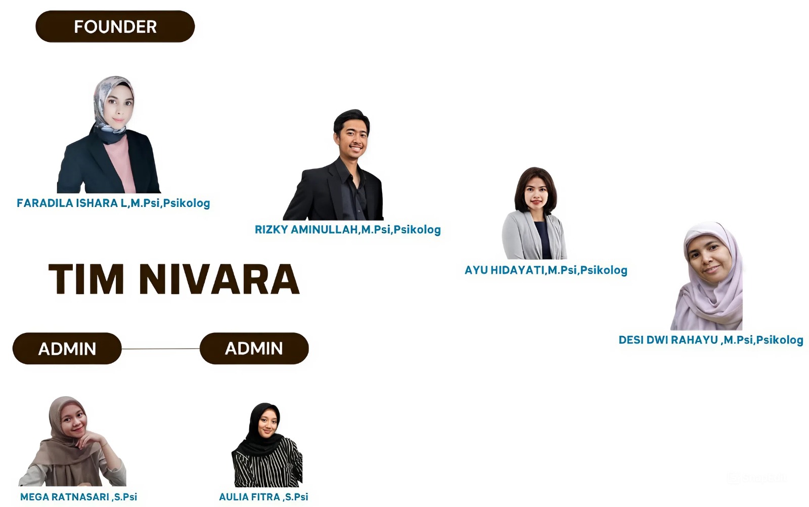 Tim Nivara Consulting terdiri dari para tenaga profesional yang berpengalaman dalam bidang psikologi. Kami siap membantu dalam "mengawal" perjalanan kesehatan mental dan emosional Anda.